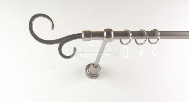Az ORLANDO 300 cm-es nikkel-matt színű 1 rudas fém karnis szett tartalma: 1 db 300 cm-es nikkel-matt színű 16 mm átmérőjű fém karnisrúd 2 db Orlando típusú nikkel-matt színű végzáró 3 db falra szerelhető fém konzol 30 db fém karika műanyag ráncszedő kampóval