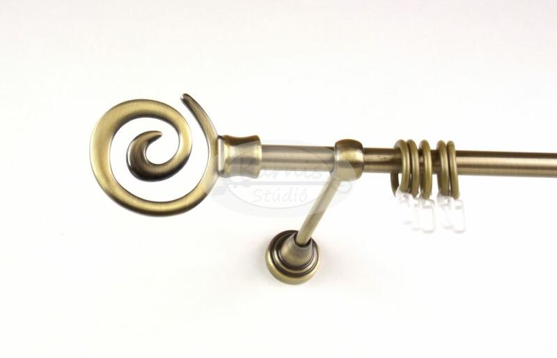 A HOUSTON óarany színű 200 cm-es, 1 rudas fém karnis szett tartalma: 1 db 200 cm-es óarany színű, 16 mm átmérőjű fém karnisrúd 2 db Houston típusú óarany színű fém karnis végzáró 2 db falra szerelhető fém konzol 20 db óarany színű műanyag függönykarika ráncszedő kampóval