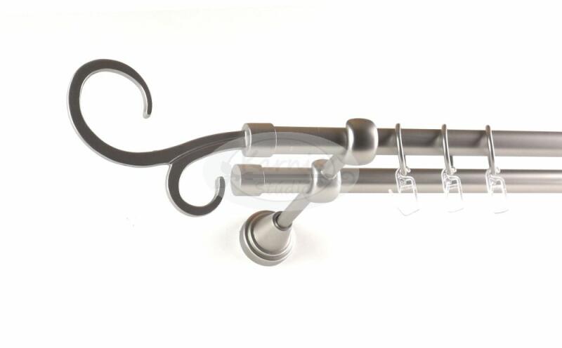 A MARSEILLE 2 rudas, 320 cm-es TITÁN színű fém karnis szett tartalma: 4 db 19 mm átmérőjű, 160 cm hosszú fém karnisrúd titán színben 2 db toldó elem 2 db Marseille típusú fém karnis végzáró 2 db Nantes típusú fém karnis végzáró 3 db falra szerelhető fém konzol 64 db titán színű fém karika ráncszedő kampóval A Karnis Stúdió által kínált függönykarnis rudak