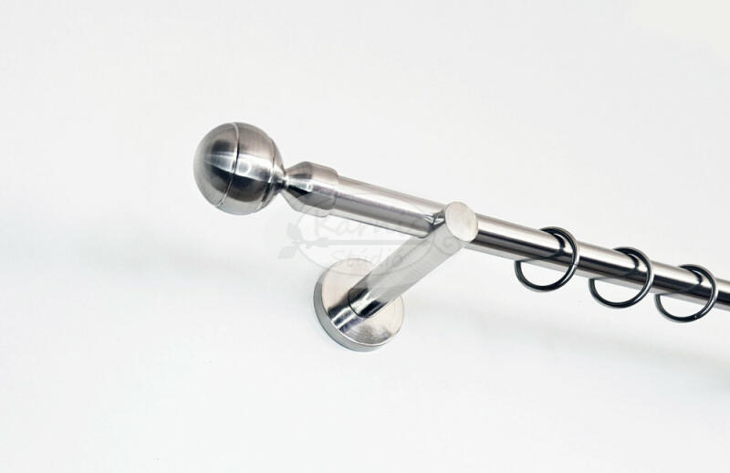 A NEW ORLEANS 300 cm-es, 1 rudas fém karnis szett tartalma: 1 db fényes inox színű 300 cm-es fém karnisrúd 2 db New Orleans típusú fém karnis végzáró 3 db falra szerelhető fém konzol 30 db fém függönykarika műanyag ráncszedő kampóval