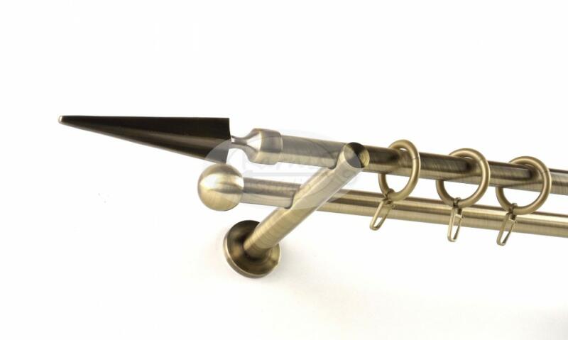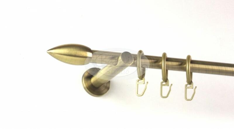 A MEMPHIS óarany színű, 300 cm-es, 1 rudas, modern tartós fém karnis szett tartalma: 1 db 300 cm-es óarany színű, 16 mm átmérőjű fém karnisrúd 2 db Memphis típusú óarany színű fém karnis végzáró 3 db falra szerelhető modern fém konzol 30 db óarany színű műanyag függönykarika ráncszedő kampóval