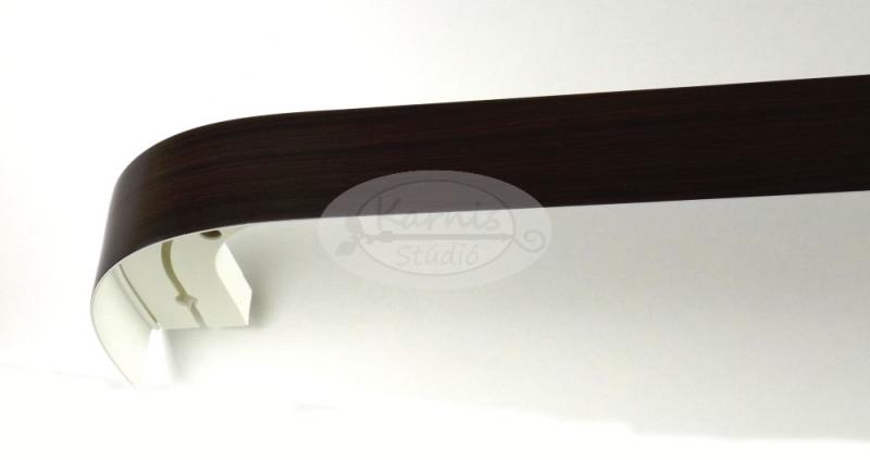 Semisoft 1 sínes szatén-dió színű előlapos fa karnis MENNYEZETRE Anyaga: fa Színe: szatén dió A fa előlap magassága 85 mm, vastagsága: 16 mm Az 1 soros sín méretei: 80 mm széles, 16 mm magas A (fotón is látható) szett tartalma: - fa előlapos karnis a kiválasztott hosszban két végén lezárással (de enélkül is kérhető, ha pl. két fal közé kerül a karnis) - bele való