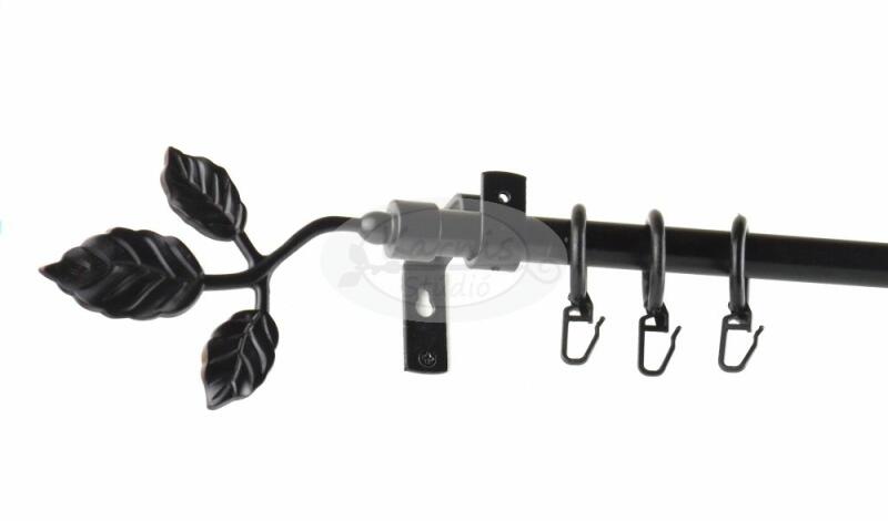A TATA fekete 1 rudas 240 cm-es karnis szett tartalma: 1 db 240 cm-es fekete fém karnisrúd 2 db Tata típusú fekete fém végzáró 3 db falra szerelhető fém konzol a felszereléshez szükséges tiplik és csavarok 24 db fekete műanyag karika fekete színű ráncszedő kampóval