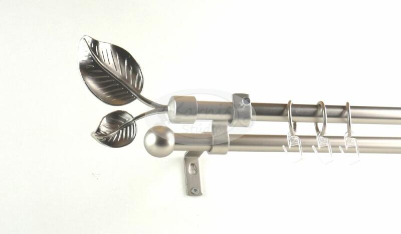 A SZELLŐ nikkel-matt színű 200 cm-es 2 rudas fém karnis szett tartalma: 2 db 200 cm-es nikkel-matt színű fém karnisrúd 2 db Szellő típusú, nikkel-matt színű levél formájú karnis végzáró 2 db Veszprém típusú kis gömb végzáró 2 db falra szerelhető karnis tartó fém konzol 40 db fém függönykarika műanyag ráncszedő kampóval a felszereléshez szükséges tiplik és cs