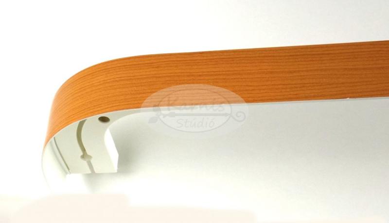 Semisoft 2 sínes szatén-dió színű előlapos fa karnis MENNYEZETRE Anyaga: fa Színe: szatén-dió (vagy a lenyíló ablakból kiválasztható) A fa előlap magassága 85 mm, vastagsága: 16 mm A 2 soros sín méretei: 120 mm széles, 16 mm magas A (fotón is látható) szett tartalma: - fa előlapos karnis a kiválasztott hosszban két végén lezárással (de enélkül is kérhető, ha pl. k
