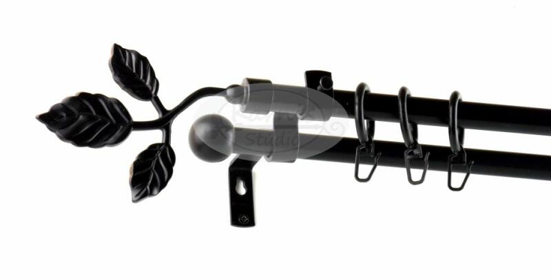 A TATA fekete 320 cm-es 2 rudas karnis szett tartalma: 4 db 160 cm-es fekete fém karnisrúd 2 db toldó elem 2 db Tata típusú fekete fém végzáró 2 db Veszprém típusú kis gömb végzáró 3 db falra szerelhető fém konzol a felszereléshez szükséges tiplik és csavarok 64 db fekete műanyag függönykarika ráncszedő kampóval