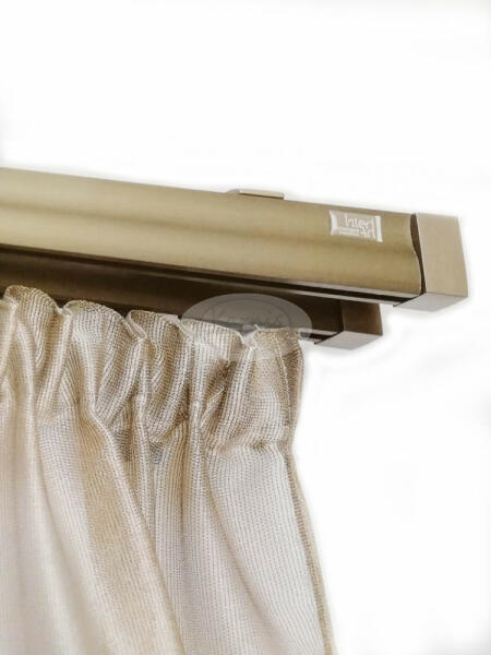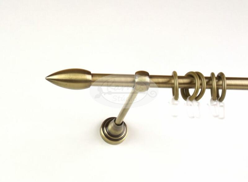A MEMPHIS óarany színű 300 cm-es, 1 rudas fém karnis szett tartalma: 1 db 300 cm-es óarany színű, 16 mm átmérőjű fém karnisrúd 2 db Memphis típusú óarany színű fém karnis végzáró 3 db falra szerelhető fém konzol 30 db óarany színű műanyag függönykarika ráncszedő kampóval