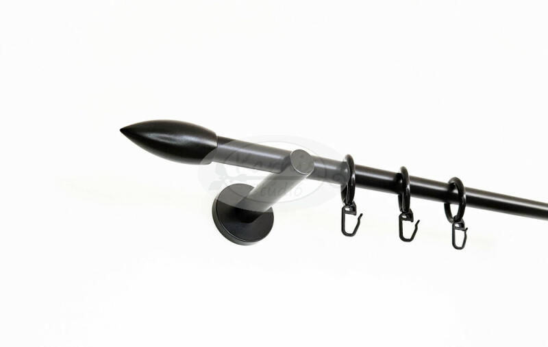 A MOHÁCS fekete színű, 1 rudas, 160 cm-es, modern tartós fém karnis szett tartalma: 1 db fekete színű, 160 cm hosszú, 16 mm átmérőjű fém karnisrúd 2 db Mohács típusú fekete fém végzáró 2 db falra szerelhető modern fém konzol 16 db fekete műanyag karika fekete színű ráncszedő kampóval