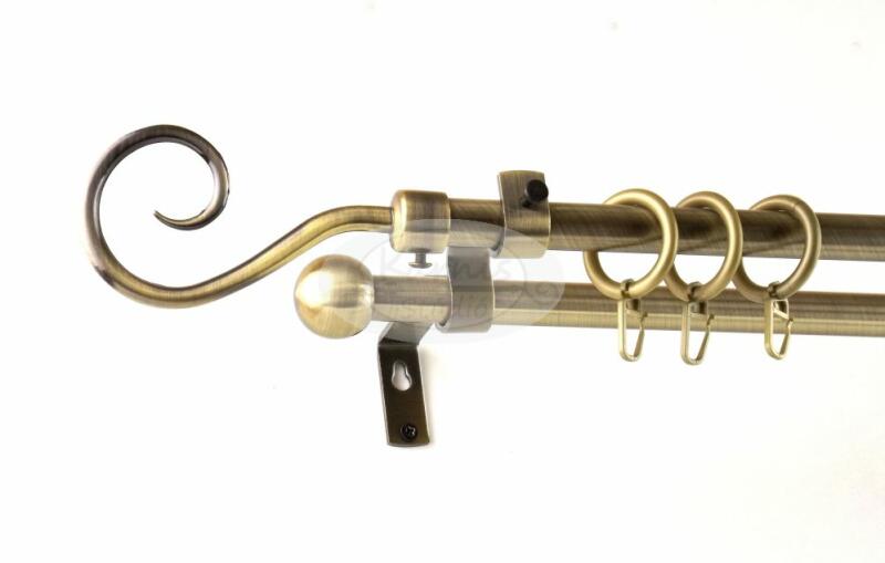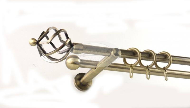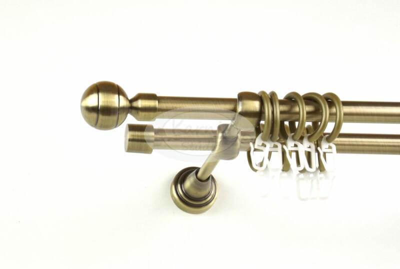 A SZEGED óarany színű, 120 cm-es, 2 rudas, modern tartós fém karnis szett tartalma: 2 db 120 cm-es óarany fém karnisrúd 2 db Szeged típusú óarany színű fém végzáró 2 db Veszprém típusú kis gömb végzáró 2 db falra szerelhető modern fém konzol 24 db óarany színű műanyag karika ráncszedő kampóval A Karnis Stúdió által kínált függönykarnis rudak fix méretűek,