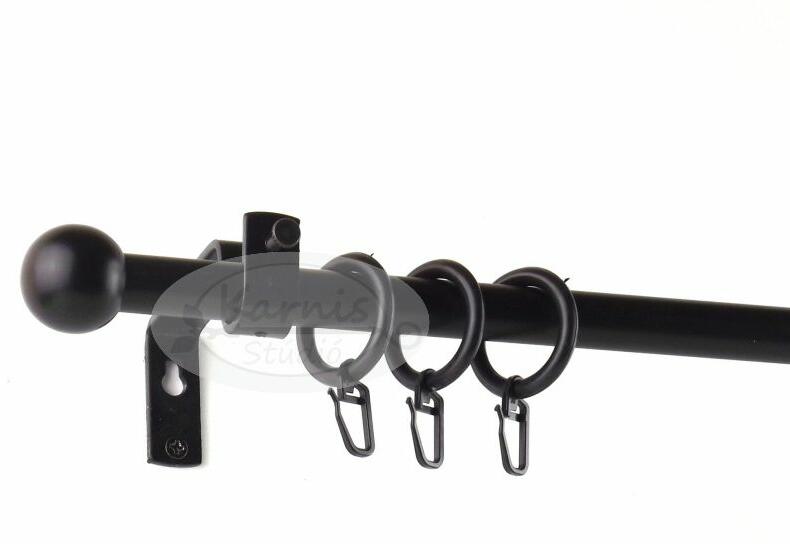 A KESZTHELY fekete 1 rudas, 320 cm-es, modern tartós fém karnis szett tartalma: 2 db 160 cm-es, 16 mm átmérőjű, fekete fém karnisrúd 1 db toldó elem 2 db Keszthely típusú fekete fém végzáró 3 db falra szerelhető modern fém konzol 32 db fekete műanyag karika fekete színű ráncszedő kampóval
