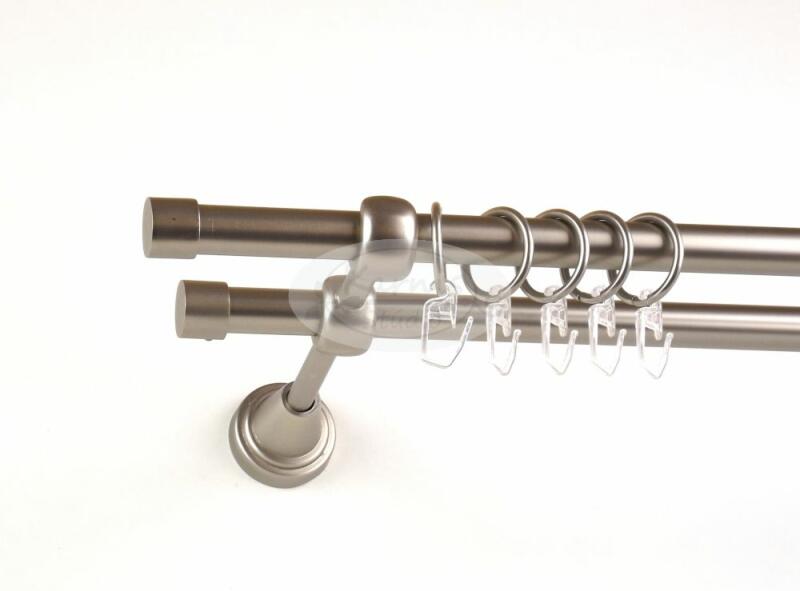 A ST. LOUIS 120 cm-es nikkel-matt színű 2 rudas fém karnis szett tartalma: 2 db 120 cm-es nikkel-matt színű 16 mm átmérőjű fém karnisrúd 2 db St. Louis nikkel-matt színű fém karnis végzáró 2 db Kansas típusú, kis kupak formájú fém karnis végzáró 2 db falra szerelhető, modern fém konzol 24 db fém karika műanyag ráncszedő kampóval A Karnis Stúdió által kínált fü