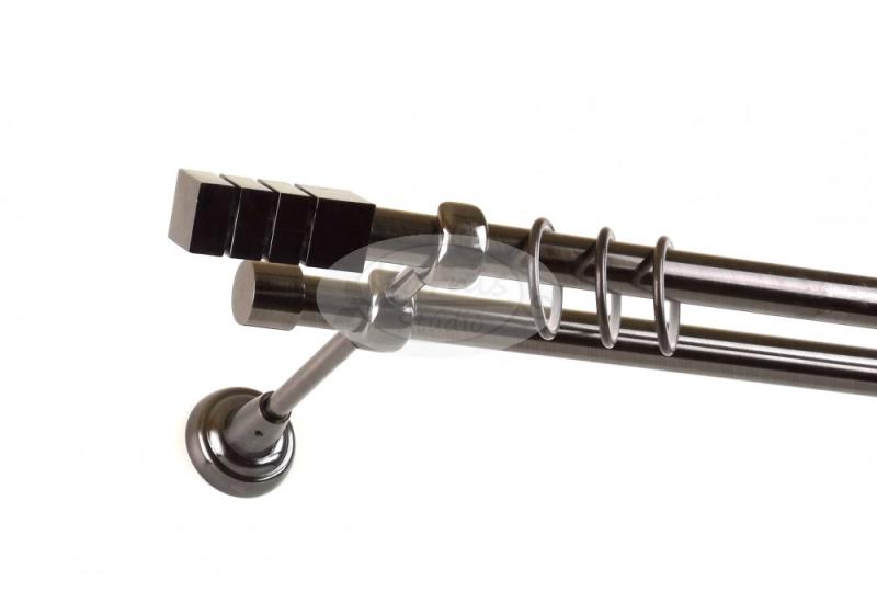 A PROTOS onyx (onix) színű 2 rudas, 19 mm átmérőjű fém karnis szett tartalma: 2 db onyx színű fém karnisrúd a kiválasztott hosszúságban 2 db Protos onyx színű fém karnis végzáró (hossza: 6,5 cm) 2 db Alfa onyx színű fém karnis végzáró (hossza: 2 cm) onyx színű klasszikus fém karnis tartó konzolok (200 cm-ig 2 db, 240 cm-es hossztól 3 db) a felszereléshez szükséges