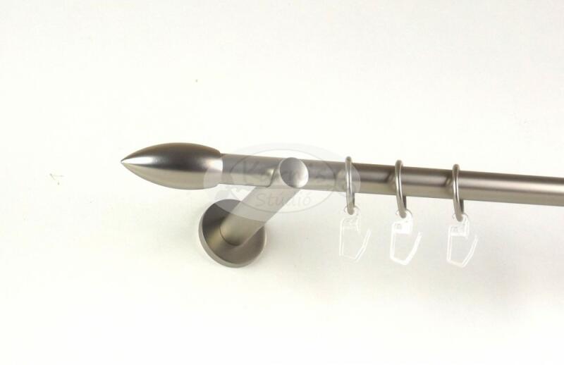 A LORIENT 2 rudas, 240 cm-es TITÁN színű fém karnis szett tartalma: 2 db 19 mm átmérőjű, 240 cm hosszú fém karnisrúd titán színben 2 db Lorient típusú fém karnis végzáró 2 db Nantes típusú fém karnis végzáró 3 db falra szerelhető fém konzol 48 db titán színű fém karika ráncszedő kampóval A Karnis Stúdió által kínált függönykarnis rudak fix méretűek, de eg