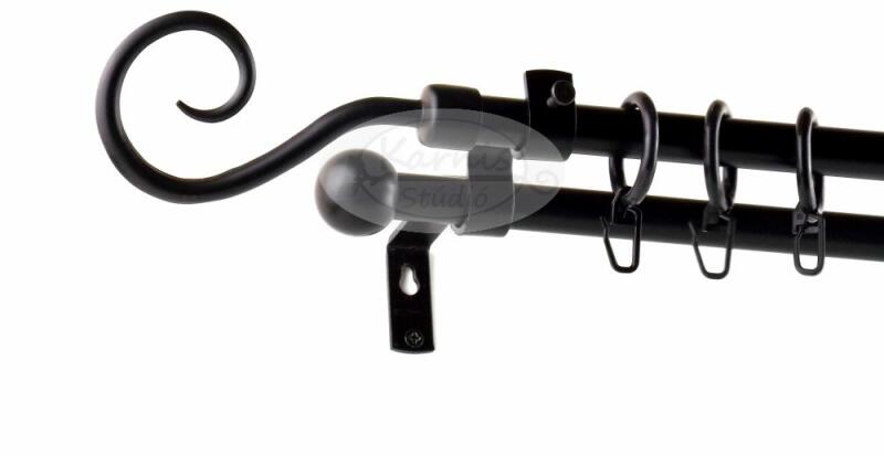 A SOPRON fekete 120 cm-es 2 rudas karnis szett tartalma: 2 db fekete 120 cm-es fém karnisrúd a választott hosszúságban 2 db Sopron típusú fekete fém végzáró 2 db Veszprém típusú kis gömb végzáró 2 db falra szerelhető fém konzol a felszereléshez szükséges tiplik és csavarok 24 db fekete műanyag függönykarika ráncszedő kampóval A 16 mm-es Pannónia fém függönykarnis