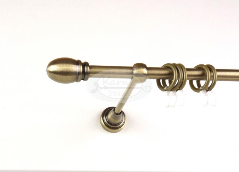A ST. LOUIS óarany színű 120 cm-es, 1 rudas fém karnis szett tartalma: 1 db 120 cm-es óarany színű, 16 mm átmérőjű fém karnisrúd 2 db St. Louis típusú óarany színű fém karnis végzáró 2 db falra szerelhető fém konzol 12 db óarany színű műanyag függönykarika ráncszedő kampóval A 16 mm-es Amerika fém függönykarnis család tagjai a legnagyobb végzáró választékk
