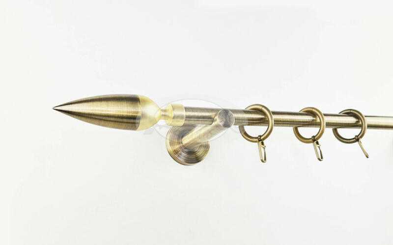 Az ORLANDO óarany színű 240 cm-es, 1 rudas fém karnis szett tartalma: 1 db 240 cm-es óarany színű, 16 mm átmérőjű fém karnisrúd 2 db Orlando típusú óarany színű fém karnis végzáró 3 db falra szerelhető fém konzol 24 db óarany színű műanyag függönykarika ráncszedő kampóval