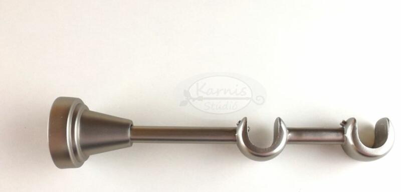 A MIAMI 120 cm-es nikkel-matt színű 2 rudas fém karnis szett tartalma: 2 db 120 cm-es nikkel-matt színű 16 mm átmérőjű fém karnisrúd 2 db Miami típusú nikkel-matt színű fém karnis végzáró 2 db Kansas típusú, kis kupak formájú fém karnis végzáró 2 db falra szerelhető, modern fém konzol 24 db fém karika műanyag ráncszedő kampóval A Karnis Stúdió által kínált f