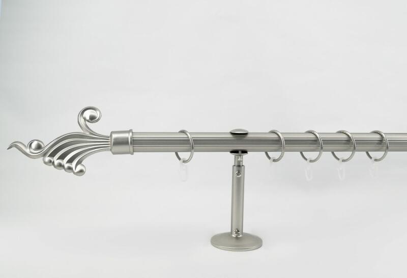 Krómozott galéria szett, a csövek átmérője 25/19. PVC gyűrűk és kapcsok. A 300 cm-nél nagyobb méreteknél középen egy kötés található. A galériához minden felszereléshez szükséges tartozék tartozik. A kiválasztott méret nem tartalmazza a díszfejek hosszát. Díszes vége hossza 7 cm.
