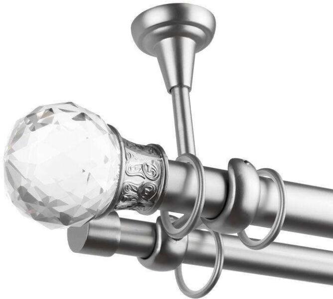Krómozott galéria szett, a csövek átmérője 25/19. PVC gyűrűk és kapcsok. A 300 cm-nél nagyobb méreteknél középen egy kötés található. A galériához minden felszereléshez szükséges tartozék tartozik. A kiválasztott méret nem tartalmazza a díszfejek hosszát. Díszes vége hossza 7 cm.