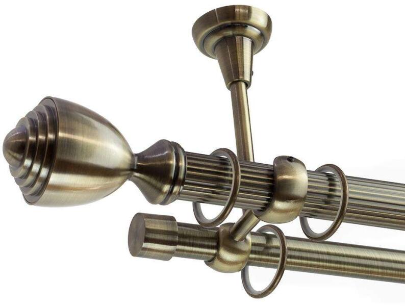 A függönykarnis szett tartalma: - 1 db óarany színű 19 mm Ø karnisrúd a választott méretben - 2 db óarany Kiev függönykarnis végzáró (6,5 cm) - 2 db szimpla óarany nyitott tartó (17 cm) - óarany karikák és ráncszedő kampók (10 cm-ként 1 db) - a szereléshez szükséges csavarok és tiplik 240 cm karnishossz felett 3 db tartókonzolt tartalmaz a csomag. Webáruházunkban meg