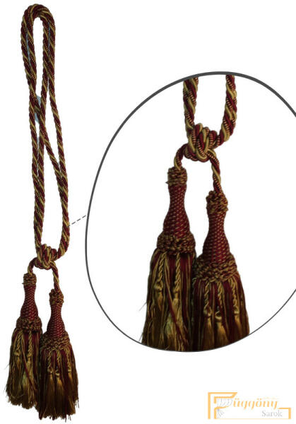 ◤ Kategória: Függöny kikötő ◤ Mérete: 60 cm hosszú. Bojt mérete:20cm ◤Zsinór vastagsága: 8 mm ◤ Szín: Bordó arany ◤ Anyagösszetétel: 20% kevert szál, 50% acetát, 30% polipropilén Kategória: Függöny kikötő Szín: Bordó arany Anyagösszetétel: 20% kevert szál, 50% acetát, 30% polipropilén Súly: Varázsold egyedi megjelenésűvé sötétítő függönyeidet, kár