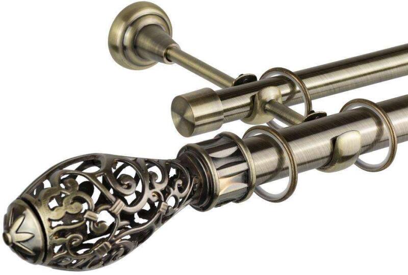 Kétsoros fém függönykarnis szett antik arany színben. Vásárlás előtt kérem, figyelemmel olvassa el a szállítási opciókat! A fém végzáró elem mérete: 15 x 11 cm. A fém karnis rúd átmérője: 16 mm. A fém karnis rúd hosszát Ön tudja ki választani ami 120 cm-300 cm között lehet. Ebben segítségére lehet a lent található karnist szett paraméterei táblázat. Végzár