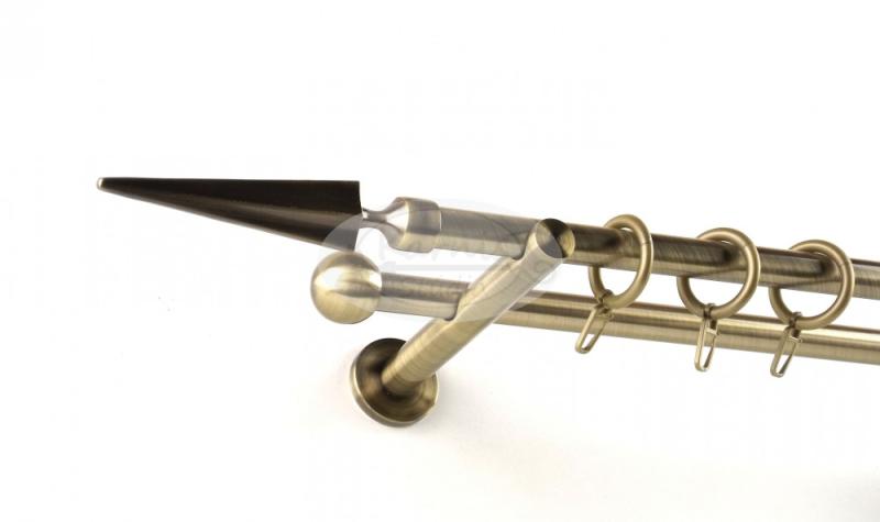 Termék részletekA VESZPRÉM óarany színű, 160 cm-es, 2 rudas, modern tartós fém karnis szett tartalma: 2 db 160 cm-es óarany színű fém karnisrúd 4 db Veszprém típusú óarany színű fém végzáró 2 db falra szerelhető óarany színű modern fém konzol 32 db óarany színű műanyag karika ráncszedő kampóval