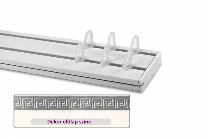 A függönykarnis szett tartalma: A kiválasztott méretű kétsoros műanyag mennyezeti függönysín 1 db/ szett"T" csúszkás ráncszedő kampó10 centiméterenként 1 db/szettVégzáró elem2 db/szettFurat takaróMennyisége függ a karnis méretétőlTiplik és csavarokA függönykarnis felszereléséhezDekor előlap1 db/szett