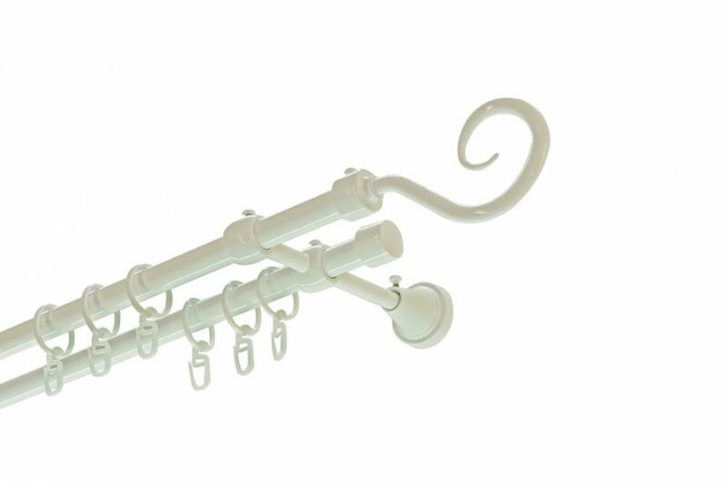 Horog kétsoros fém karnis szett fehér színű 300 cm . Vásárlás előtt kérem, figyelemmel olvassa el a szállítási opciókat! A szett tartalma: Fém karnis rúd 300 cm2 db. / csomagHorog fém végzáró2 db. / csomagRilló fém végzáró2 db. / csomagKétsoros fém tartó konzol2 db. / csomagFém karika24 db/ csomagMűanyag ráncszedő kampó24 db/ csomag A függönykarnis és tartozéka