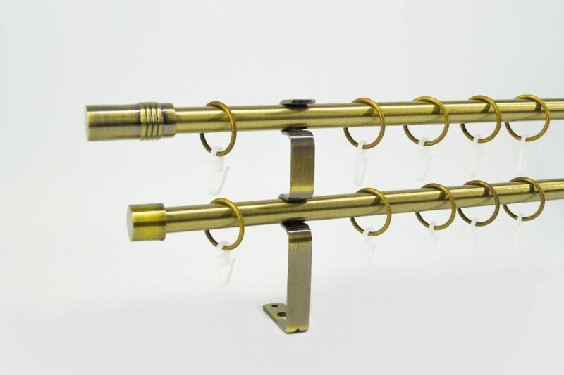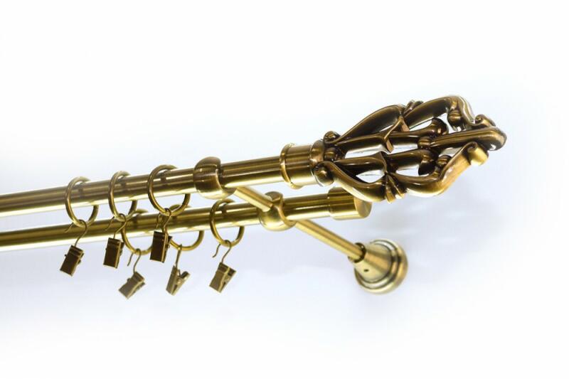 Kétsoros fém függönykarnis szett antik arany színben. Vásárlás előtt kérem, figyelemmel olvassa el a szállítási opciókat! A fém végzáró elem mérete: 13,5 x 4 cm. A fém karnis rúd átmérője: 16 mm. A fém karnis rúd hosszát Ön tudja ki választani ami 120 cm-300 cm között lehet. Ebben segítségére lehet a lent található karnist szett paraméterei táblázat. Végzár