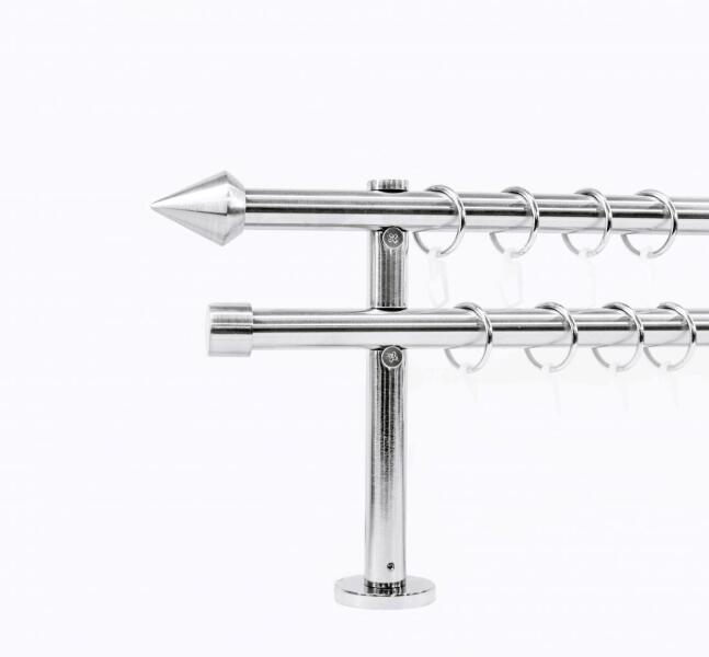 A szett tartalma: - 2 db inox színű 19 mm Ø rúd a választott méretben - 2 db inox Göteborg végzáró (3,5 cm) - 2 db inox Köln végzáró (2 cm)- a hátsó rúdra - 2 db dupla inox block tartó (12/18 cm) - inox karikák ráncszedőkampóval (rudanként, 10 cm-ként 1 db) - a szereléshez szükséges csavarok és tiplik 240 cm karnishossz felett 3 db tartót tartalmaz a csomag. Webáruhá