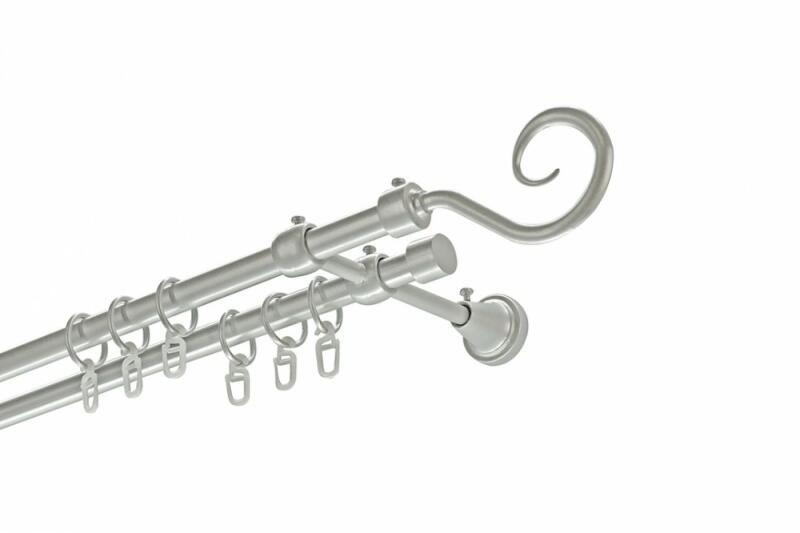 Krómozott galéria szett, a csövek átmérője 25/19. PVC gyűrűk és kapcsok. A 300 cm-nél nagyobb méreteknél középen egy kötés található. A galériához minden felszereléshez szükséges tartozék tartozik. A kiválasztott méret nem tartalmazza a díszfejek hosszát. Díszes vége hossza 7 cm.