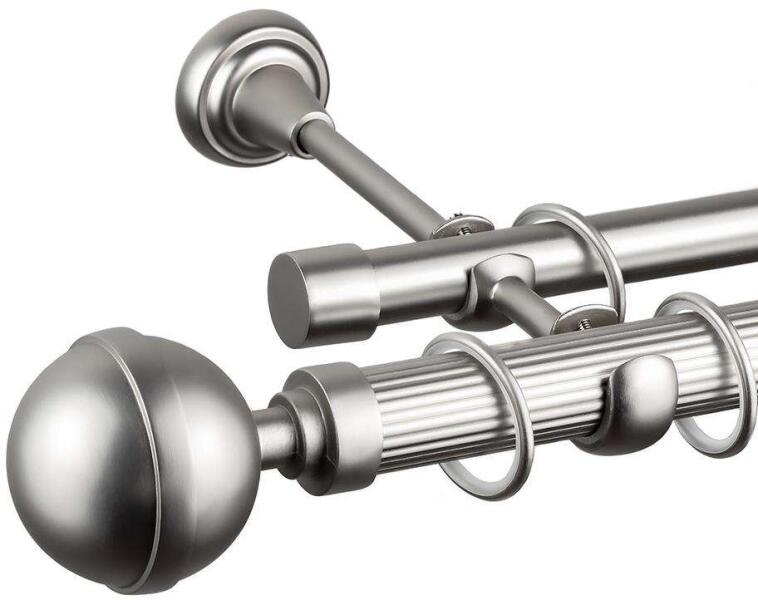 A szett tartalma: - 2 db nikkel-matt színű 16 mm Ø rúd a választott méretben - 2 db nikkel-matt Kecskemét végzáró (13 cm) - 2 db nikkel- matt Kansas végzáró (2 cm)- a hátsó rúdra - 2 db dupla nikkel-matt block tartó (8/14 cm) - nikkel-matt karikák ráncszedőkampóval (rudanként, 10 cm-ként 1 db) - a szereléshez szükséges csavarok és tiplik 240 cm karnishossz felett 3 db ta