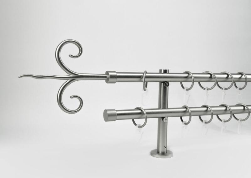 Krómozott galéria szett, a csövek átmérője 25/19. PVC gyűrűk és kapcsok. A 300 cm-nél nagyobb méreteknél középen egy kötés található. A galériához minden felszereléshez szükséges tartozék tartozik. A kiválasztott méret nem tartalmazza a díszfejek hosszát. Díszes vége hossza 7 cm.