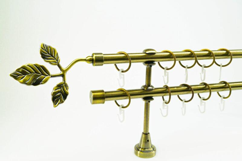 A szett tartalma: - 2 db óarany színű 16 mm Ø rúd a választott méretben - 2 db óarany Tata végzáró (13 cm) - 2 db óarany Kansas végzáró (2 cm)- a hátsó rúdra - 2 db dupla óarany nyitott tartó (11,5/17,5 cm) - óarany karikák és ráncszedő kampók (rudanként, 10 cm-ként 1 db) - a szereléshez szükséges csavarok és tiplik 240 cm karnishossz felett 3 db tartót tartalmaz a