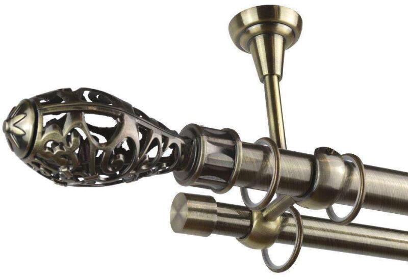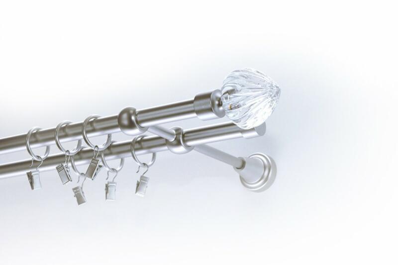 Krómozott galéria szett, a csövek átmérője 25/19. PVC gyűrűk és kapcsok. A 300 cm-nél nagyobb méreteknél középen egy kötés található. A galériához minden felszereléshez szükséges tartozék tartozik. A kiválasztott méret nem tartalmazza a díszfejek hosszát. Díszes vége hossza 7 cm.