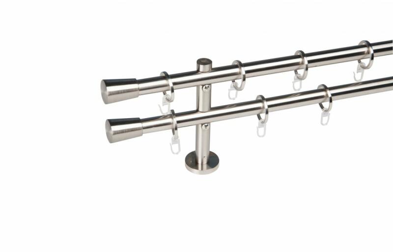 A szett tartalma: - 2 db inox színű 16 mm Ø rúd a választott méretben - 2 db inox Paris végzáró (3,5 cm) - 2 db inox Paris végzáró (3,5 cm)- a hátsó rúdra - 2 db dupla inox block tartó (8/14 cm) - inox karikák ráncszedőkampóval (rudanként, 10 cm-ként 1 db) - a szereléshez szükséges csavarok és tiplik 240 cm karnishossz felett 3 db tartót tartalmaz a csomag. Webáruházun