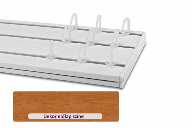 A függönykarnis szett tartalma: A kiválasztott méretű háromsoros műanyag mennyezeti függönysín 1 db/ szett"T" csúszkás ráncszedő kampó10 centiméterenként 1 db/szettVégzáró elem2 db/szettFurat takaróMennyisége függ a karnis méretétőlTiplik és csavarokA függönykarnis felszereléséhezDekor előlap1 db/szett
