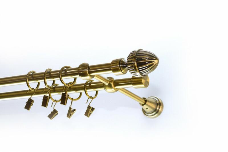 Kétsoros fém függönykarnis szett antik arany színben. Vásárlás előtt kérem, figyelemmel olvassa el a szállítási opciókat! A fém végzáró elem mérete: 7 x 4 cm. A fém karnis rúd átmérője: 16 mm. A fém karnis rúd hosszát Ön tudja ki választani ami 120 cm-300 cm között lehet. Ebben segítségére lehet a lent található karnist szett paraméterei táblázat. Az Odeon an