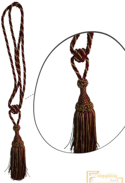 ◤ Kategória: Függöny kikötő ◤ Mérete: 60 cm hosszú. Bojt mérete:18cm ◤Zsinór vastagsága: 8 mm ◤ Szín: Bordó arany ◤ Anyagösszetétel: 20% kevert szál, 50% acetát, 30% polipropilén Kategória: Függöny kikötő Szín: Bordó arany Anyagösszetétel: 20% kevert szál, 50% acetát, 30% polipropilén Súly: Varázsold egyedi megjelenésűvé sötétítő függönyeidet, kár