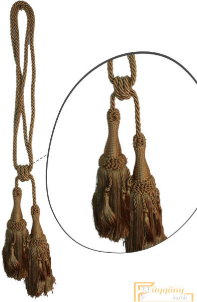 ◤ Kategória: Függöny kikötő ◤ Mérete: 65 cm hosszú. Bojt mérete:23cm ◤Zsinór vastagsága: 8mm ◤ Szín: Arany terra ◤ Anyagösszetétel: 50% Acetát 50% Viszkóz Kategória: Függöny kikötő Szín: Arany terra Anyagösszetétel: 50% Acetát 50% Viszkóz A kikötő zsinórt nem szabad kibontani, mert utána már nem lehet vissza csomózn i. 10 különböző színből választhat