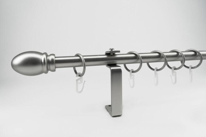 A szett tartalma: - 1 db nikkel-matt színű 16 mm Ø rúd a választott méretben - 2 db nikkel-matt St. Louis végzáró (5 cm) - 2 db szimpla nikkel-matt lapostartó (8,5 cm) - nikkel-matt karikák ráncszedőkampókkal (10 cm-ként 1 db) - a szereléshez szükséges csavarok és tiplik 240 cm karnishossz felett 3 db tartót tartalmaz a csomag. Webáruházunkban megvásárolható toldóelem, am