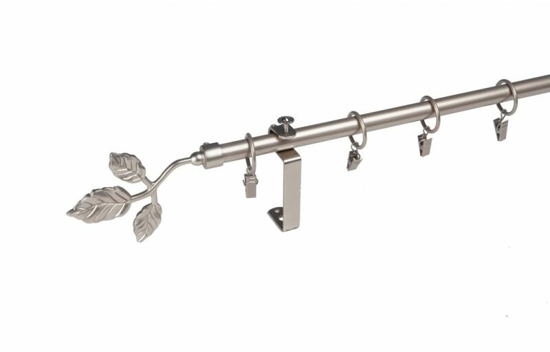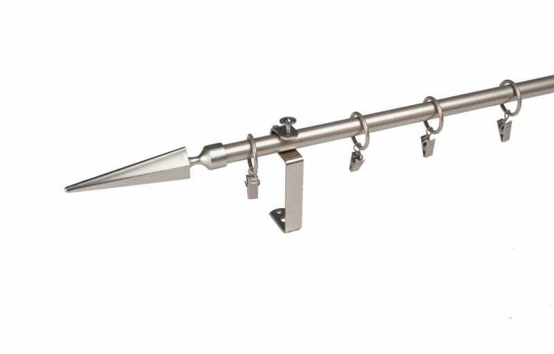 A függönykarnisszett tartalma: - 1 db nikkel-matt színű 25 mm Ø BORDÁS karnisrúd a választott méretben - 2 db nikkel-matt Linz függönykarnis végzáró ( 15 cm) - 2 db szimpla nikkel-matt nyitott tartókonzol (12-18 cm- állítható faltáv) - nikkel-matt karikák és ráncszedő kampók (10 cm-ként 1 db) - a szereléshez szükséges csavarok és tiplik 240 cm karnishossz felett 3 db t