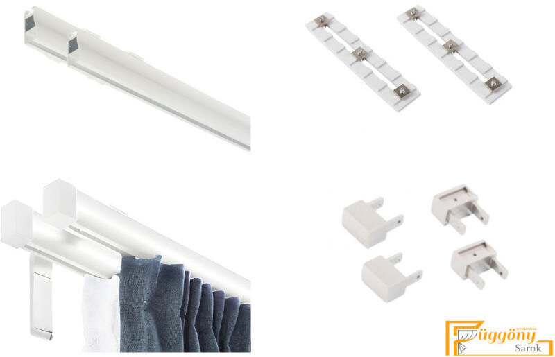 A szett tartalmaz: - 1 db műanyag, 1 soros mennyezeti sínt (a választott méretben) - A szereléshez szükséges csavarokat és tipliket - A sín hosszúságához mérten (10 cm-ként 1 db) ráncszedőkampós görgőket - Furattakaró gombokat - Sorlezáró elemeket, amelyek megakadályozzák, hogy a görgők leszaladjanak a sínről A sín vastagsága 1,5 cm! A sín szélessége 4,5 cm! A menn