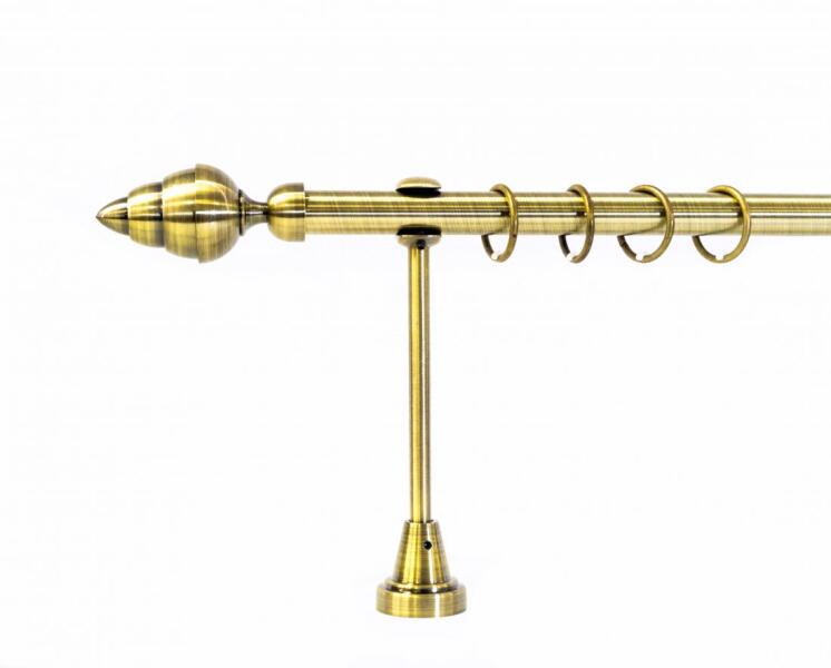 A szett tartalma: - 2 db óarany színű 16 mm Ø rúd a választott méretben - 2 db óarany St. Louis végzáró (5 cm) - 2 db óarany Kansas végzáró (2 cm)- a hátsó rúdra - 2 db dupla óarany block tartó (8/14 cm) - óarany karikák és ráncszedő kampók (rudanként, 10 cm-ként 1 db) - a szereléshez szükséges csavarok és tiplik 240 cm karnishossz felett 3 db tartót tartalmaz a cs