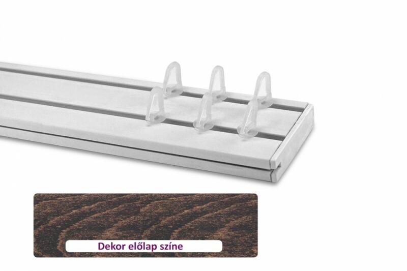 A függönykarnis szett tartalma: A kiválasztott méretű kétsoros műanyag mennyezeti függönysín 1 db/ szett"T" csúszkás ráncszedő kampó10 centiméterenként 1 db/szettVégzáró elem2 db/szettFurat takaróMennyisége függ a karnis méretétőlTiplik és csavarokA függönykarnis felszereléséhezDekor előlap1 db/szett
