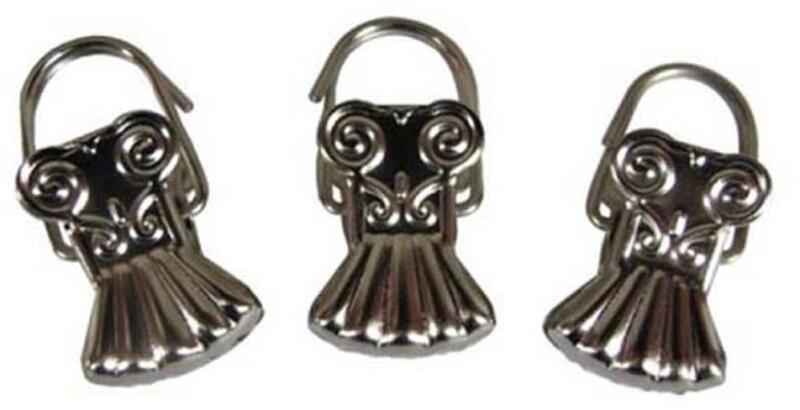 Méret: kicsi. Szín: nikkelezett, függönygörgőre, függönykarikára, függönytartó horogra szerelhető.
