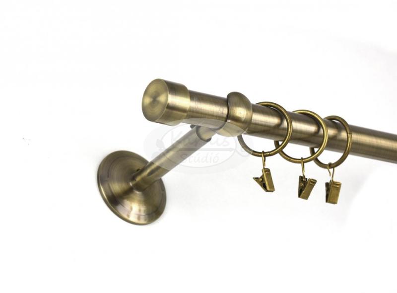Termék részletekA MURAU óarany 1 rudas karnis szett tartalma: 1 db óarany színű 25 mm átmérőjű fém karnisrúd a kiválasztott hosszúságban 2 db Murau típusú óarany fém végzáró 2 db falra szerelhető fém konzol a felszereléshez szükséges tiplik és csavarok a karnisrudak hosszának megfelelően 10 cm-ként 1 db fém karika csipesszel 240 cm és 300 cm karnishossz esetén 3 db tartó konzolt a