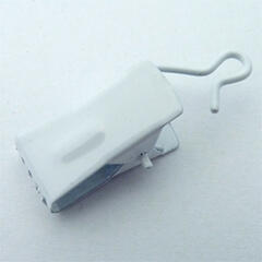Fehér színű fém függöny csipesz Függöny csipesz a Siero fém karnisok fém karikáira. Kampós végű függönycsipesz többféle karnis típushoz. Használható fém karnisrúd fémkarikáira rögzítve.