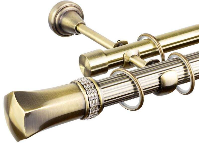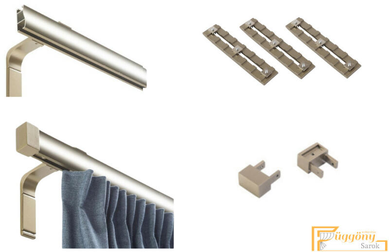 A szett tartalma: - 2 db óarany színű 16 mm Ø rúd a választott méretben - 2 db óarany Veszprém végzáró (2,5 cm) - 2 db óarany Kansas végzáró (2 cm)- a hátsó rúdra - 2 db dupla óarany nyitott tartó (11,5/17,5 cm) - óarany karikák és ráncszedő kampók (rudanként, 10 cm-ként 1 db) - a szereléshez szükséges csavarok és tiplik 240 cm karnishossz felett 3 db tartót tarta